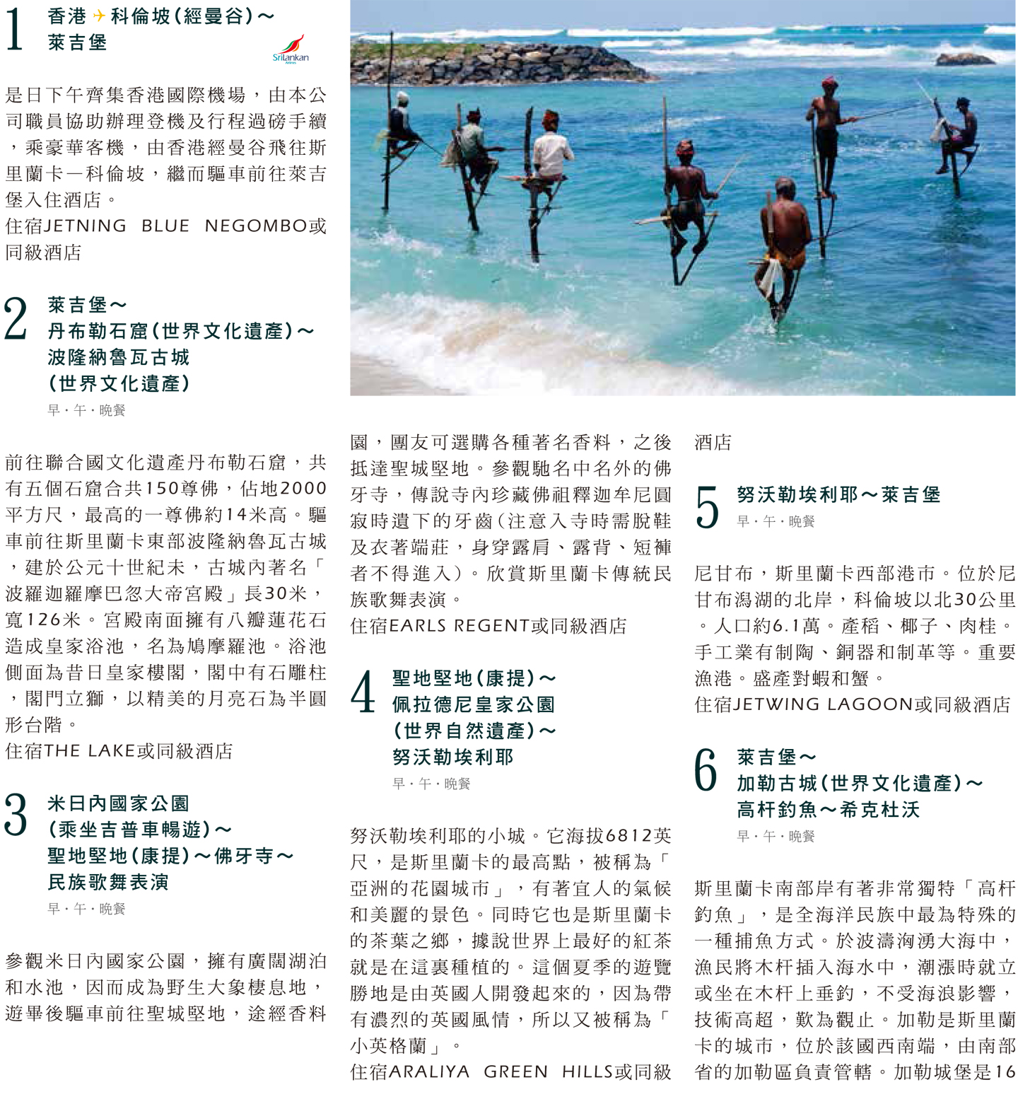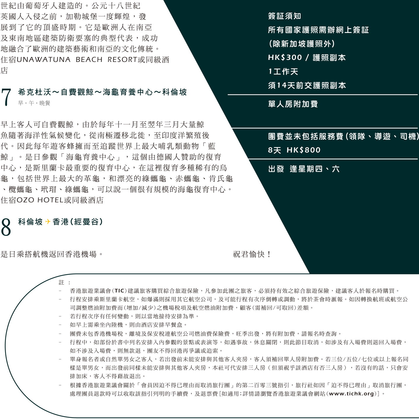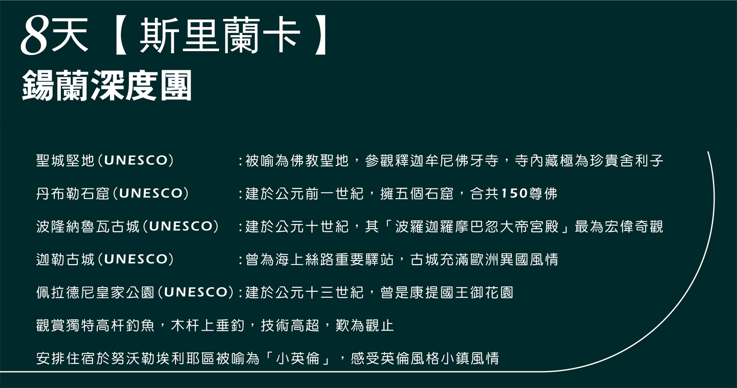 萊吉堡、米日內國家公園、康提、希克杜沃「斯里蘭卡深度遊」8天團