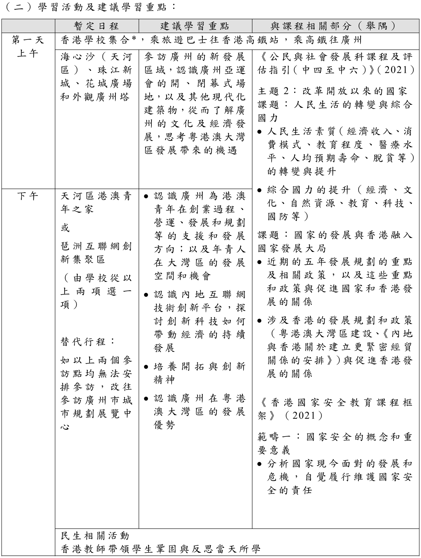 1. 學校須提供參加者身份證資料及回鄉証副本。