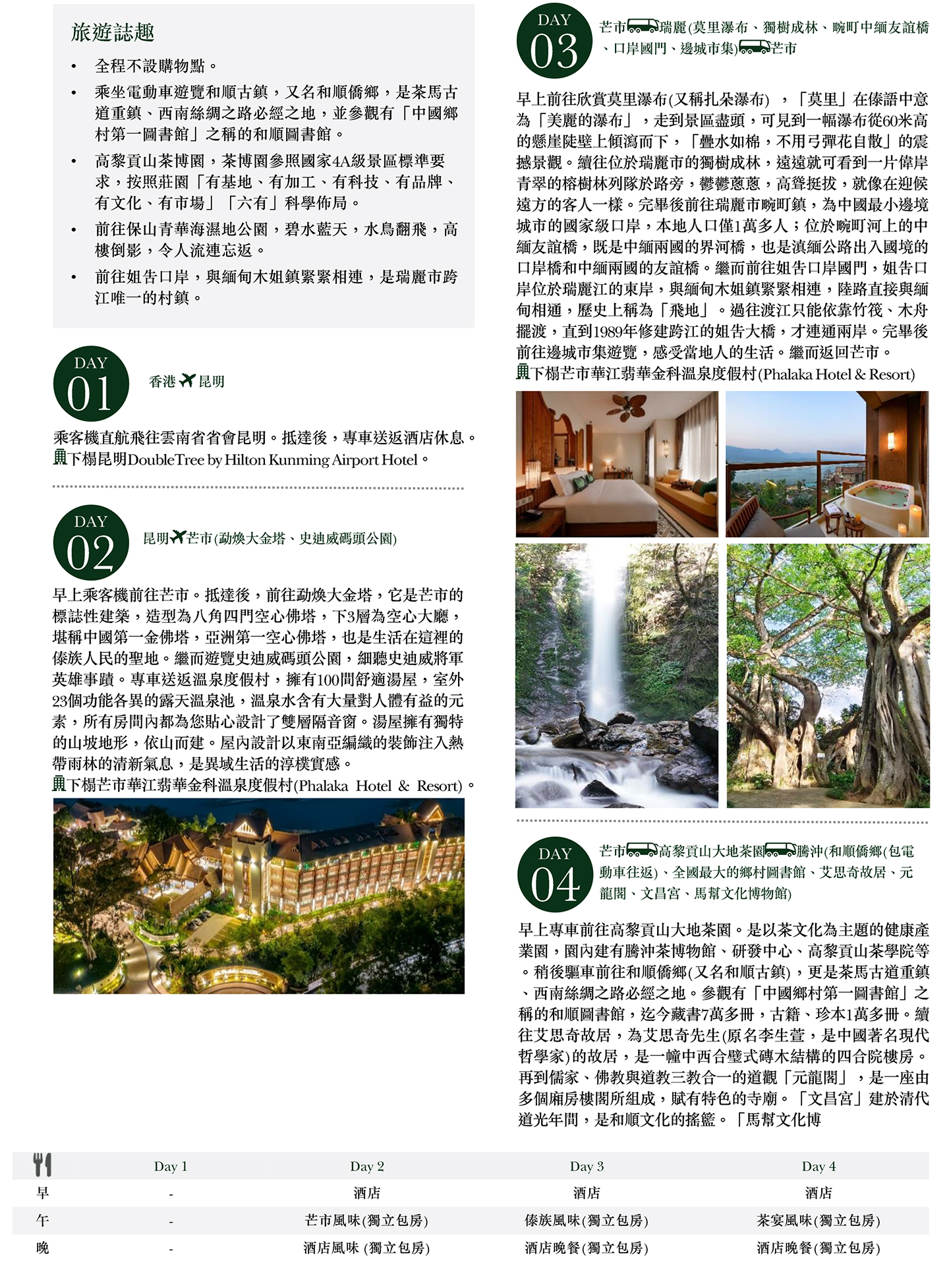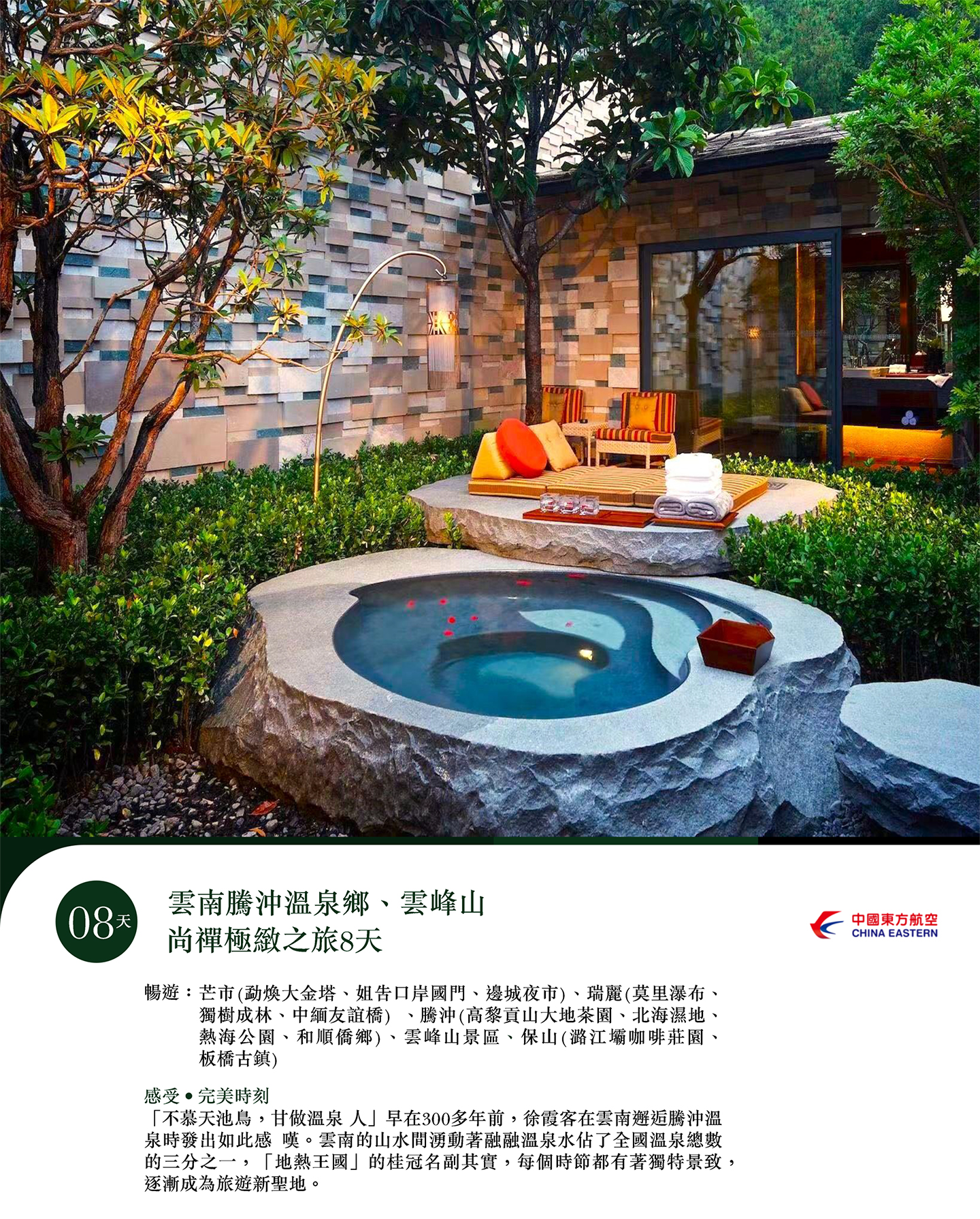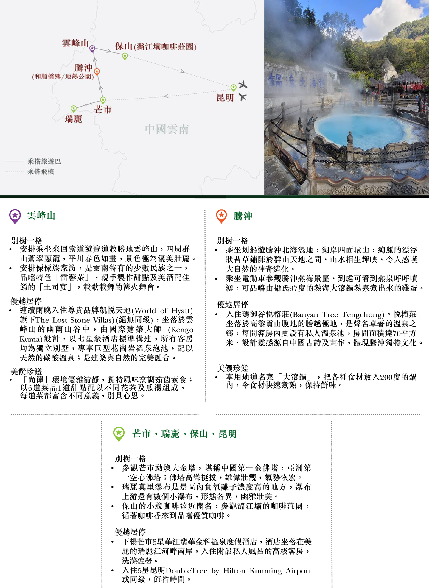 昆明、芒市、瑞麗、騰沖溫泉鄉、雲峰山、保山「尚禪極緻之旅」八天團