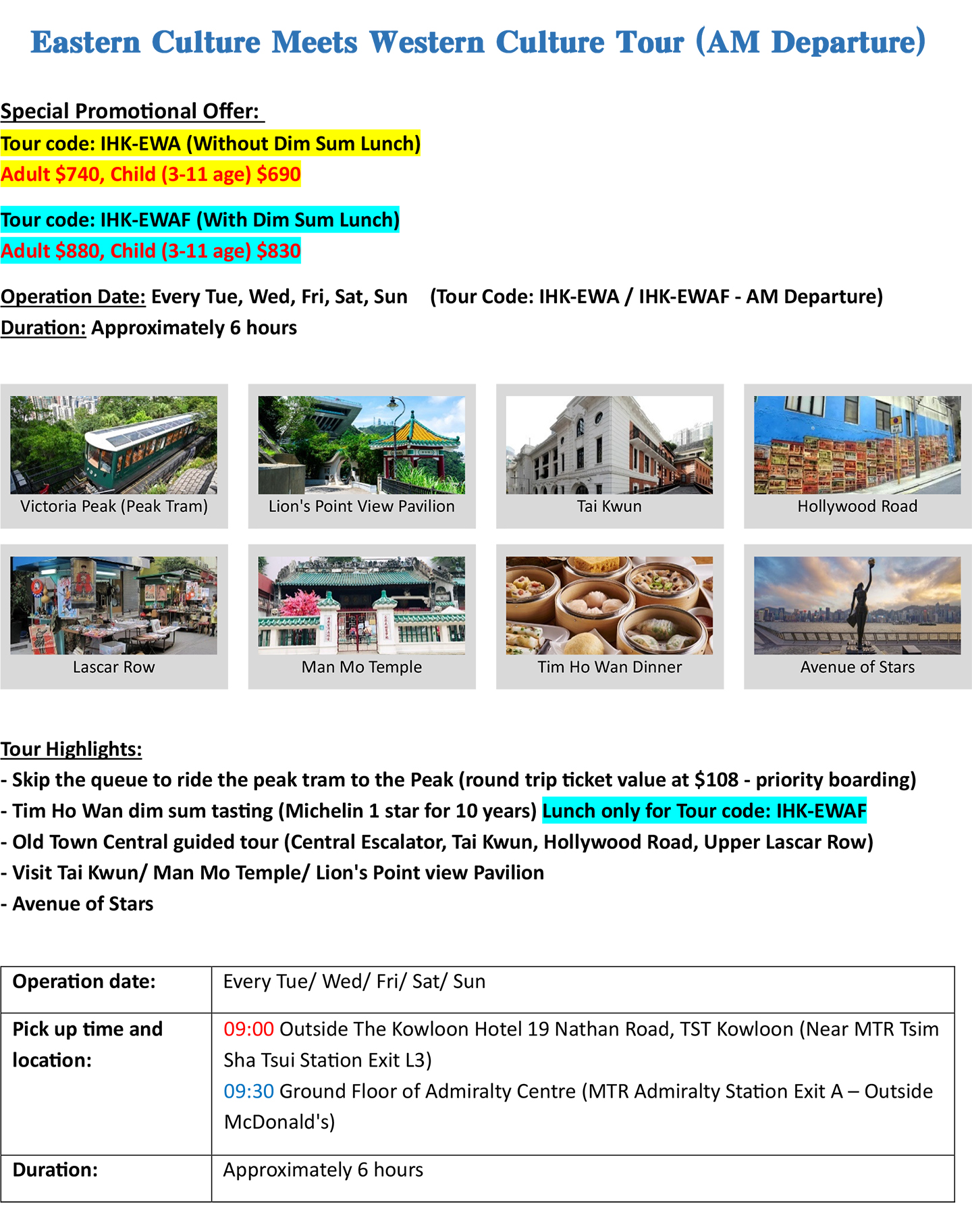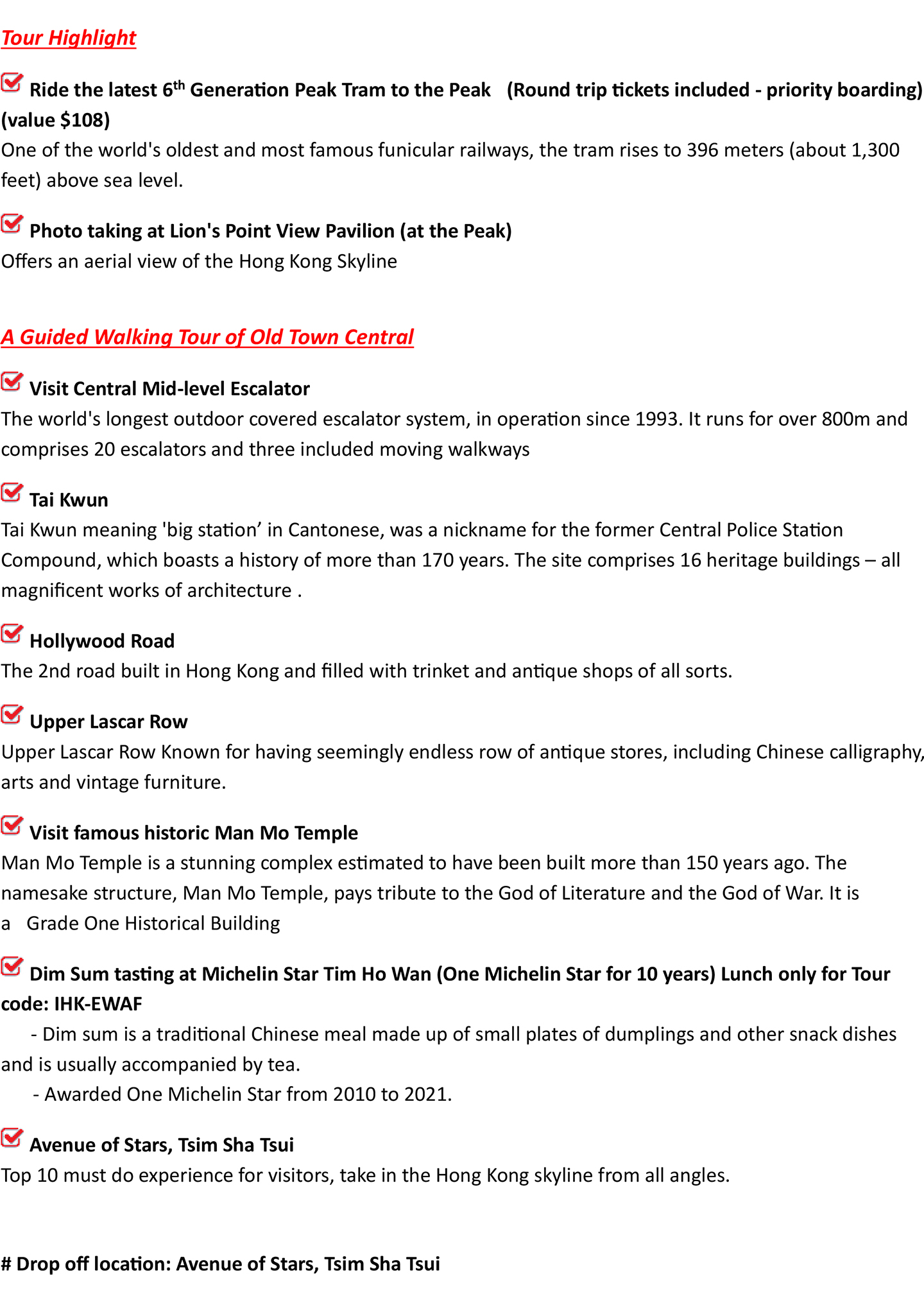 - For cancellation made 7 days or more prior to the scheduled start time of the tour, you may (a) reschedule the tour with us at no extra costs; or (b) request for a refund of the tour fee paid, subject to the deduction of an administration fee of HK$500.