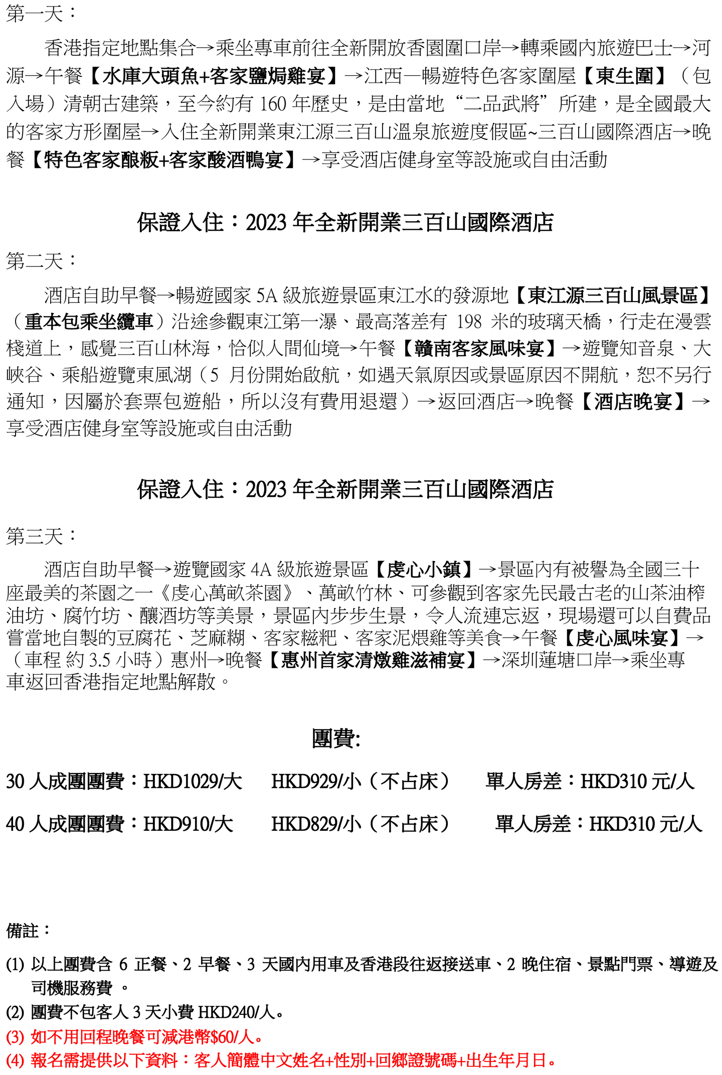 河源、江西「東江水發源地」美景純玩三天高鐵團