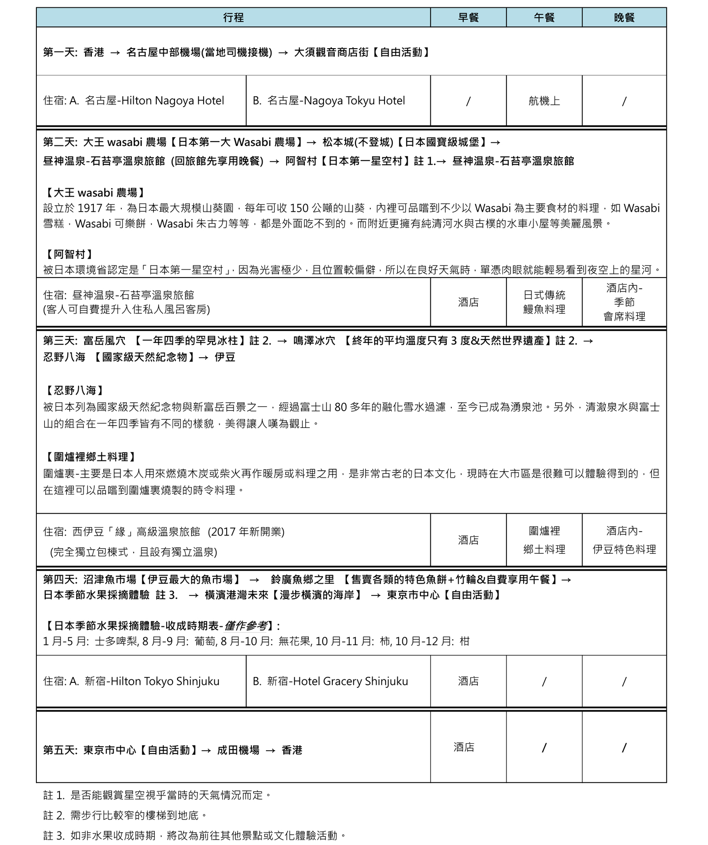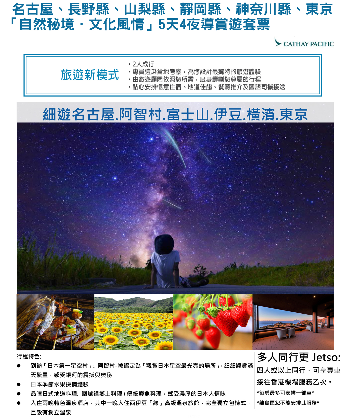 名古屋、長野、山梨、靜岡、神奈川、東京「自然秘境.文化風情」導賞套票