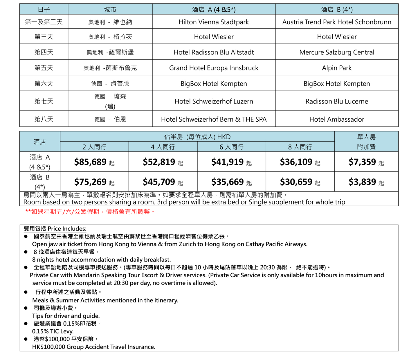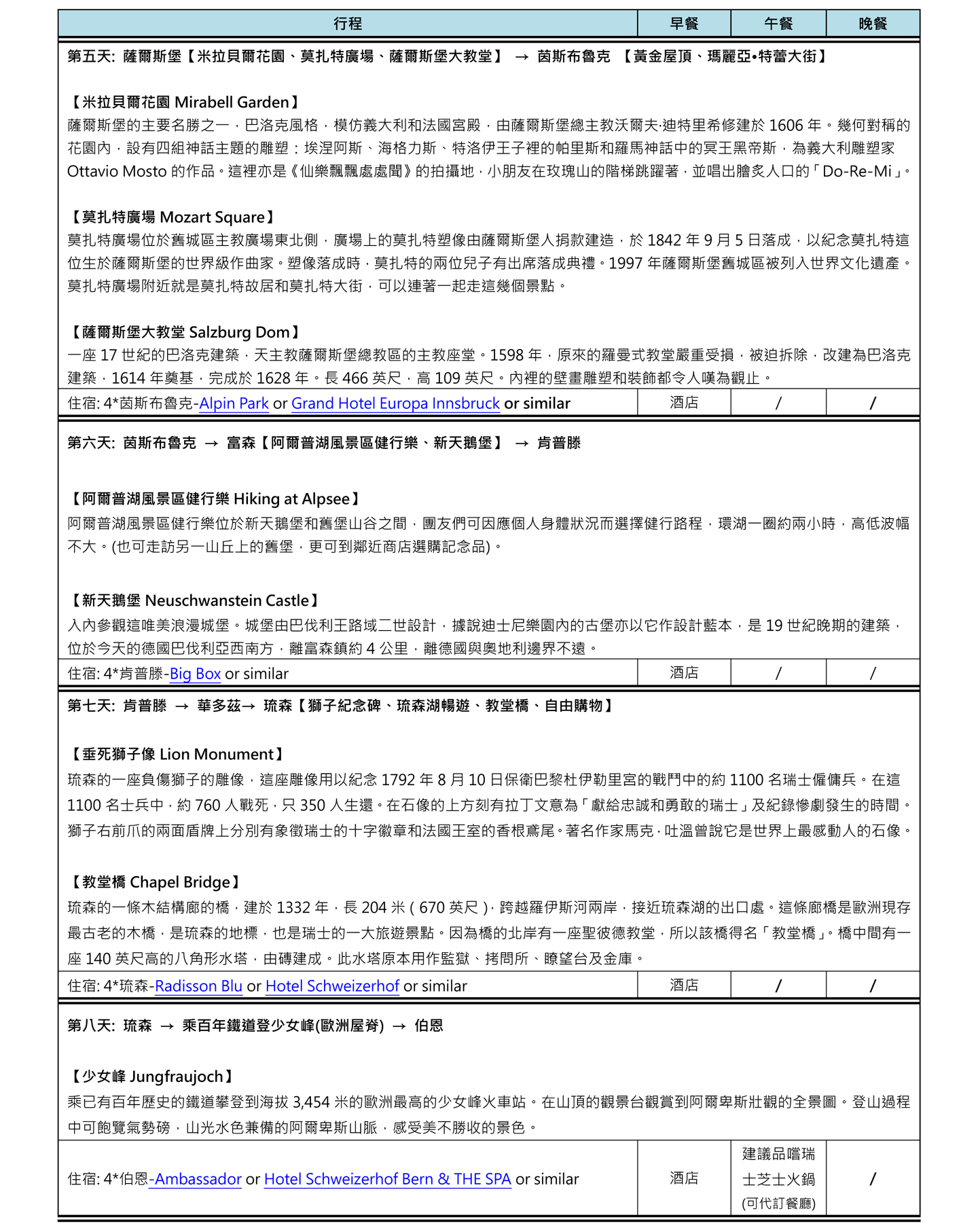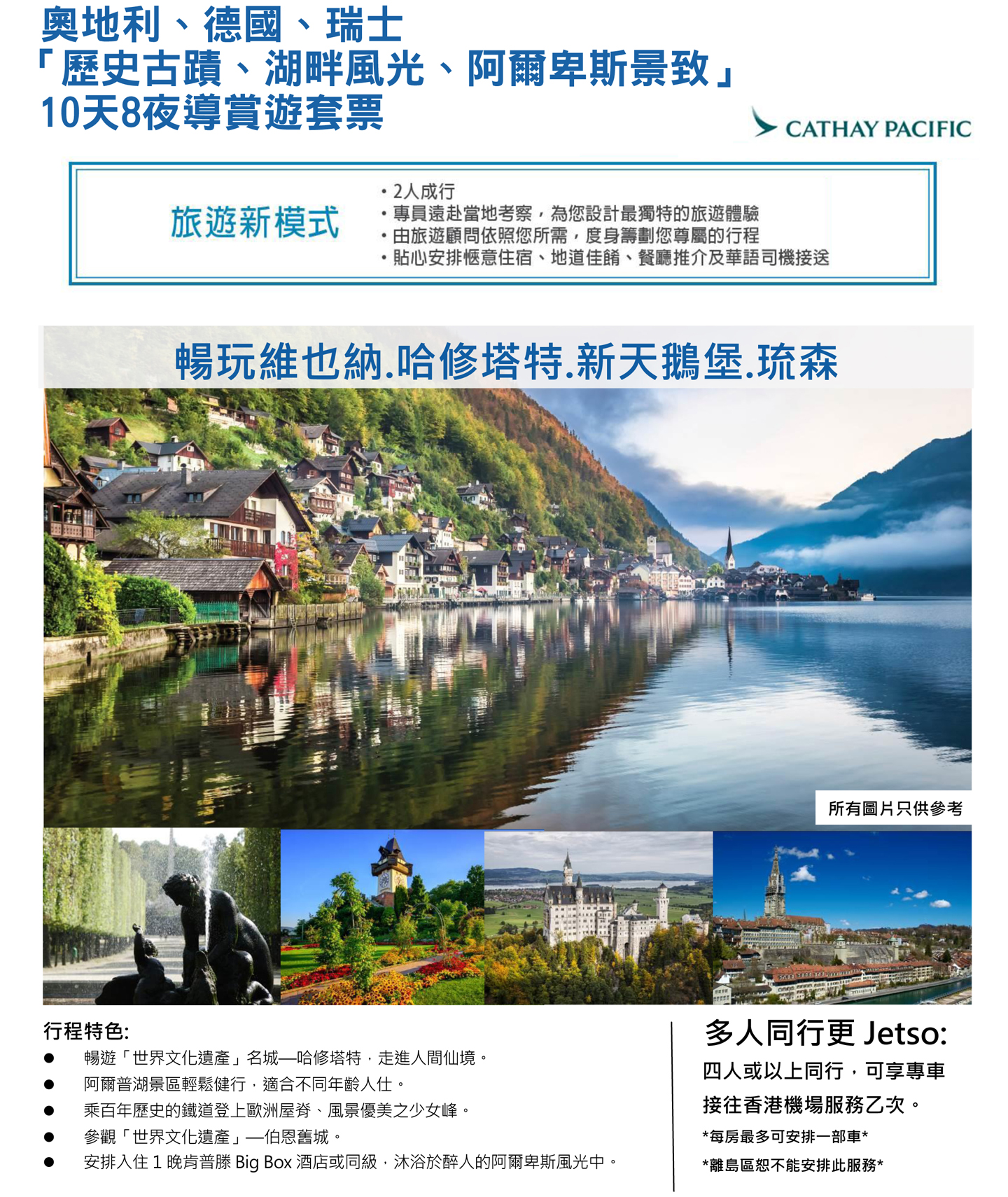 奧地利、德國、瑞士「歷史古蹟.湖畔風光.阿爾卑斯山景致」導賞遊套票