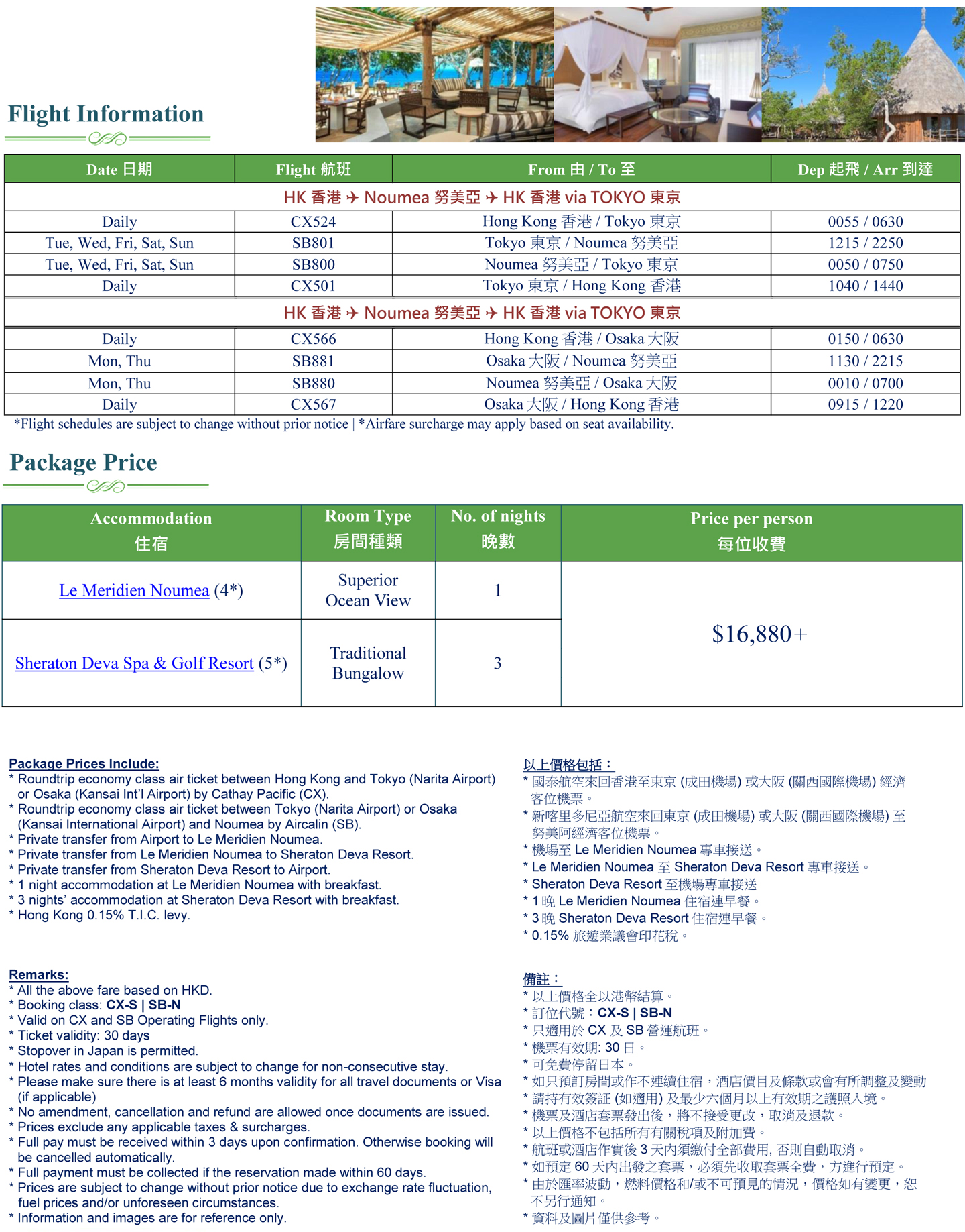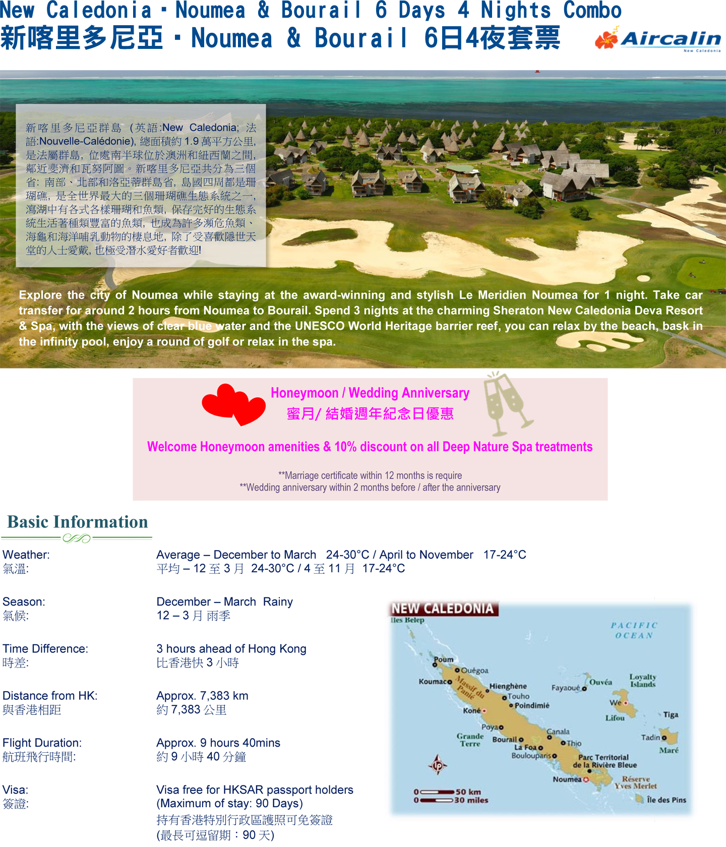 新喀里多尼亞「努美阿.Bourail.特選酒店」度假套票